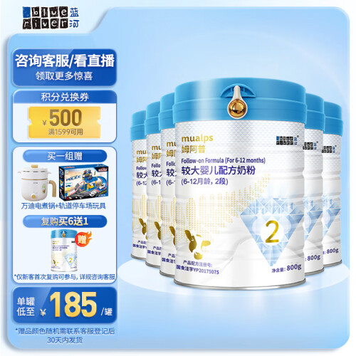 当前的位置: 首页 > 今日值得买 > 蓝河(blue river) 姆阿普较大婴儿配方牛奶粉2段800g*6罐装6-12个月新西兰原装进口
