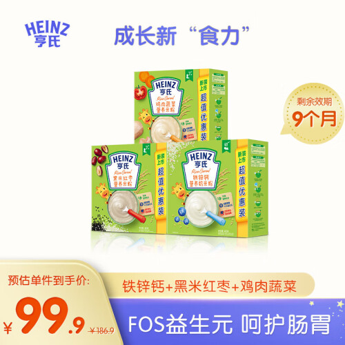 当前的位置: 首页 > 今日值得买 > 亨氏(Heinz)FOS益生元强化铁高铁米粉 婴儿辅食宝宝营养米粉 铁锌钙+黑米红枣+鸡肉蔬菜