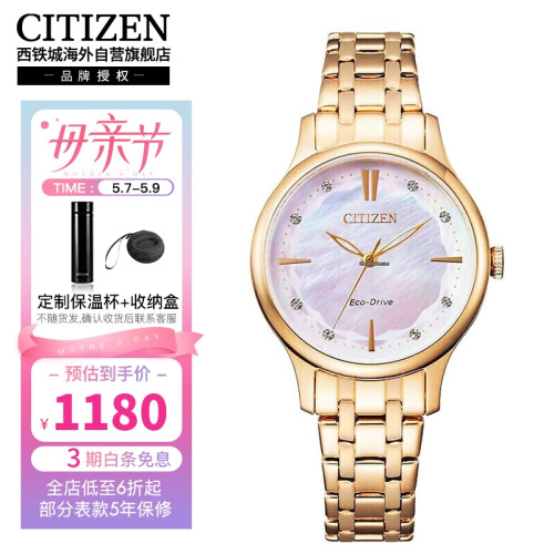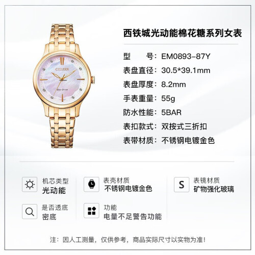 当前的位置: 首页 > 今日值得买 > 西铁城(CITIZEN)棉花糖光动能贝母盘商务休闲时尚防水女表EM0893-87Y
