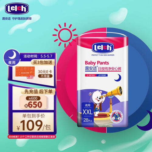 当前的位置: 首页 > 今日值得买 > 露安适(Lelch)日夜纯净系列日用拉拉裤/夜用拉拉裤超薄透气 婴儿学走裤多尺码 夜用拉拉裤XXL码28片