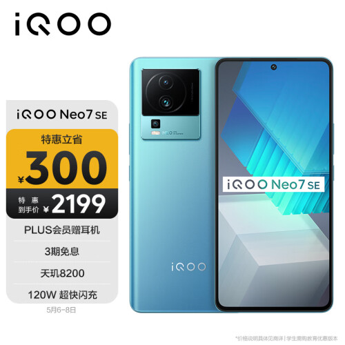 当前的位置: 首页 > 今日值得买 > vivo iQOO Neo7 SE 16GB+256GB 电子蓝 天玑8200 120W超快闪充 120Hz柔性直屏 5G游戏电竞性能手机