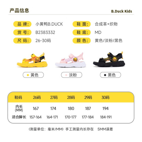 当前的位置: 首页 > 今日值得买 > B.Duck小黄鸭童鞋男童凉鞋夏季新款儿童鞋宝宝中小童软底透气休闲鞋 淡粉 30码内长约194mm