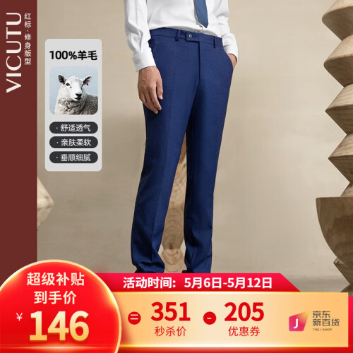 当前的位置: 首页 > 今日值得买 > 威可多(VICUTU)男士套西裤纯羊毛西装裤轻正装商务修身西服长裤VRS19321967 蓝色 175/87A