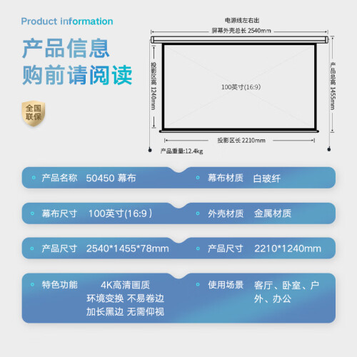 当前的位置: 首页 > 今日值得买 > 得力(deli)高端系列100英寸16:9白玻纤遥控电动投影幕布 适配坚果极米当贝小米投影机 投影仪投影幕布50450