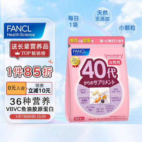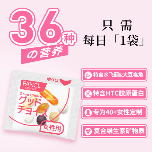 当前的位置: 首页 > 今日值得买 > 芳珂FANCL 女士复合维生素 女性40+综合营养包 30日量 VBVC 奶蓟草 胶原蛋白辅酶蓝莓 更年期不适 海外进口