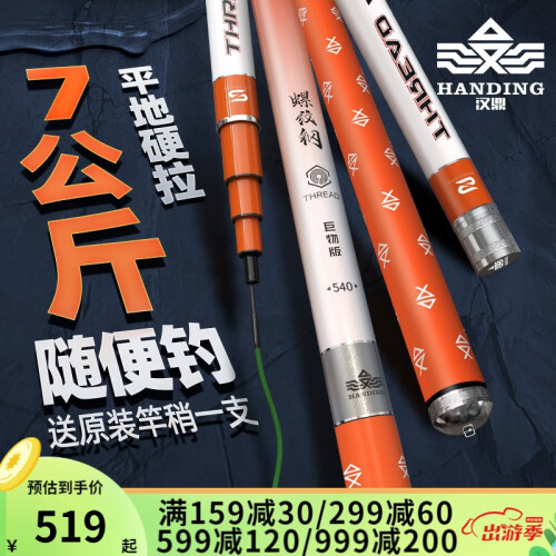 当前的位置: 首页 > 今日值得买 > 汉鼎 鱼竿螺纹钢轻量大物竿巨物竿碳素综合台钓竿青鲟鲢鳙渔具钓鱼竿 7.2米(现货速发·整竿免费配节)