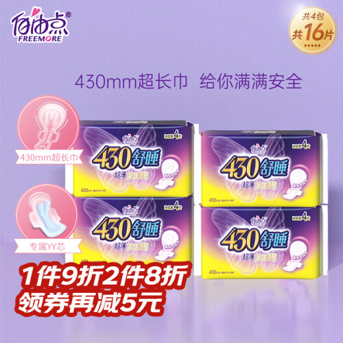 当前的位置: 首页 > 今日值得买 > 自由点超薄棉柔舒睡超长夜用卫生巾430mm 16片超大尾扇量多防渗漏姨妈巾