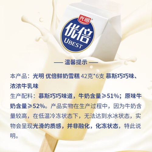 当前的位置: 首页 > 今日值得买 > 光明 优倍鲜奶雪糕 42g*6支 慕斯巧巧味 浓浓牛乳味 冰激凌冷饮冰淇淋