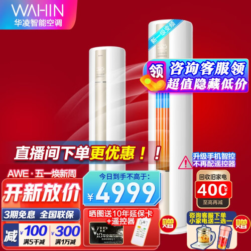 当前的位置: 首页 > 今日值得买 > 华凌空调 2匹/3匹空调 新一级能效 变频冷暖 家用客厅圆柱空调立式柜机 智能自清洁 除湿 智能家电 【3匹】新1级 节能省电72HA1 送货入户 上门安装