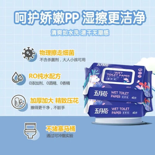 当前的位置: 首页 > 今日值得买 > 五月花湿厕纸40片清洁湿纸巾湿巾升级压花安全无刺激配方 6包240抽(200*140mm)