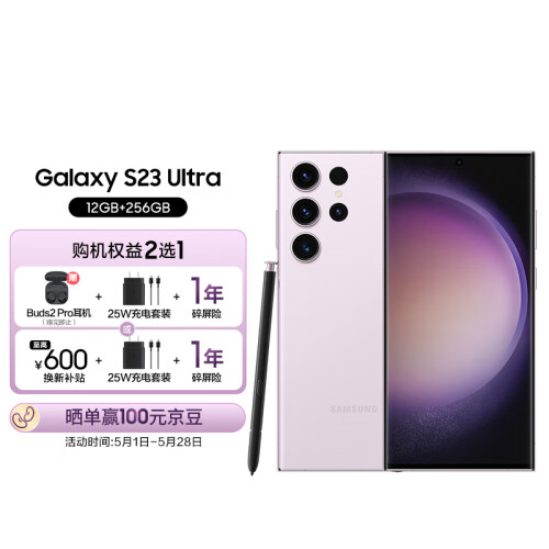 当前的位置: 首页 > 今日值得买 > 三星 SAMSUNG Galaxy S23 Ultra 超视觉夜拍 稳劲性能 大屏S Pen书写 12GB+256GB 悠雾紫 5G手机