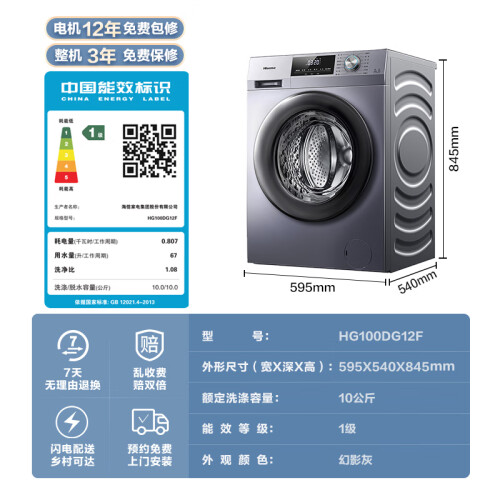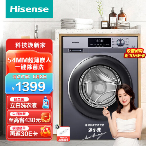 当前的位置: 首页 > 今日值得买 > 海信(Hisense)滚筒洗衣机全自动 10公斤家用大容量 超薄 BLDC变频 除菌除螨洗 护色洗 HG100DG12F以旧换新