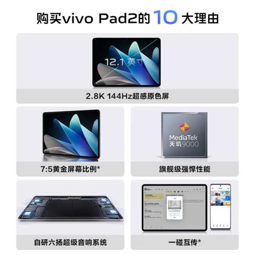 当前的位置: 首页 > 今日值得买 > vivo Pad2 平板电脑 12GB+256GB 远山灰 12.1英寸超大屏幕 144Hz超感原色屏 天玑9000旗舰芯片 10000mAh电池