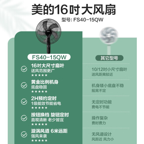 当前的位置: 首页 > 今日值得买 > 美的(Midea)电风扇落地扇家用大风力立式升降摇头五叶风扇宿舍低噪节能16吋大尺寸风扇 【16吋大风量】FS40-15QW
