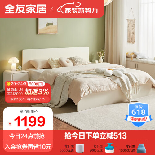 当前的位置: 首页 > 今日值得买 > 全友家居床双人床现代奶油风排骨架床象牙白色温馨卧室家具106318 1.5米单床 60天发货