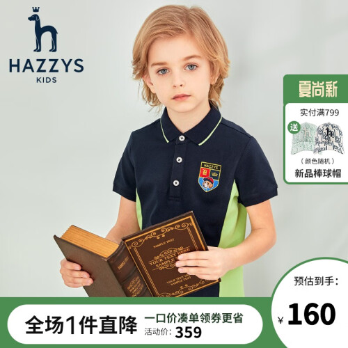当前的位置: 首页 > 今日值得买 > HAZZYS童装哈吉斯男童短袖儿童Polo衫夏季新品中大童时尚休闲T恤 藏蓝 105cm