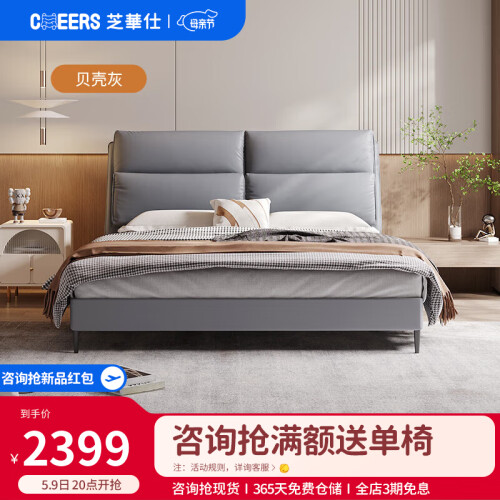 当前的位置: 首页 > 今日值得买 > 芝华仕(CHEERS)科技布艺床奶油风现代简约主卧室软包双人婚床 C357 高脚灰1.8米A