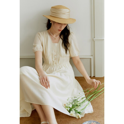 当前的位置: 首页 > 今日值得买 > 独束大码女装法式慵懒风浪漫V领连衣裙女夏季微胖mm显瘦出游裙子 奶油杏 XL