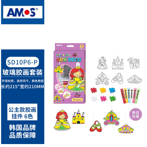 当前的位置: 首页 > 今日值得买 > 阿摩司(AMOS) 韩国玻璃免烤胶画套装 DIY儿童手工男孩女孩创意礼物 公主款胶画挂件-6色SD10P6-P
