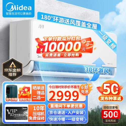 当前的位置: 首页 > 今日值得买 > 美的(Midea)空调挂机 大1匹/1.5匹 酷省电风酷冷静星 新一级能效 全直流变频冷暖 四代自清洁壁挂式家用卧室 1.5匹 风尊时尚版【3D环绕风】