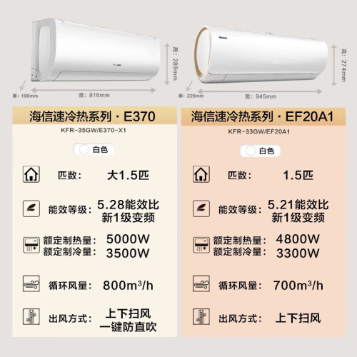 当前的位置: 首页 > 今日值得买 > 海信空调挂机大风量柔风感智能变频自清洁一键防直吹卧室壁挂式新一级 【1.5匹】舒适家KFR-35GW/E370-X1