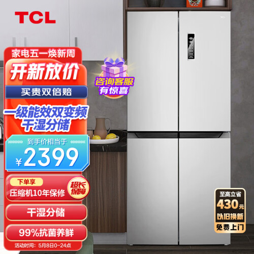 当前的位置: 首页 > 今日值得买 > TCL 432升大容量双变频十字对开双开四开门风冷无霜电冰箱 一级能效 AAT负离子养鲜 干湿分储R432V3-U
