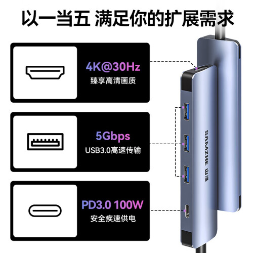 当前的位置: 首页 > 今日值得买 > 山泽 Type-C扩展坞USB-C转HDMI拓展坞转换器分线器转接头PD100W快充 适用苹果华为联想雷电3/4笔记本 TC-K5