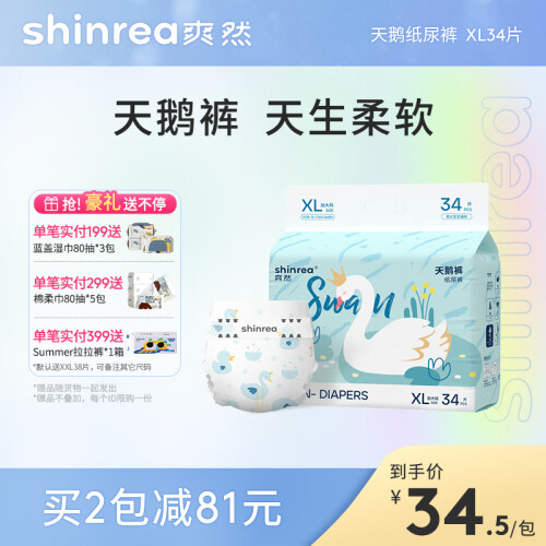 当前的位置: 首页 > 今日值得买 > 爽然天鹅裤超柔拉拉裤超薄透气男女宝宝专用婴儿尿不湿 纸尿裤 XL34片