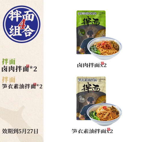 当前的位置: 首页 > 今日值得买 > 和府捞面 拌面4袋装组合 速食面方便休闲食品 经典拌面 笋衣素油*2+卤肉丁老火猪油*2