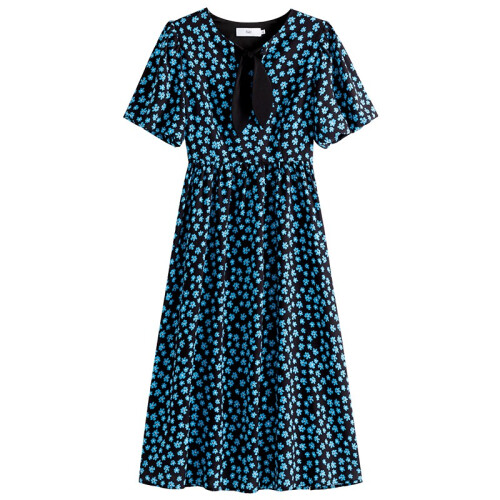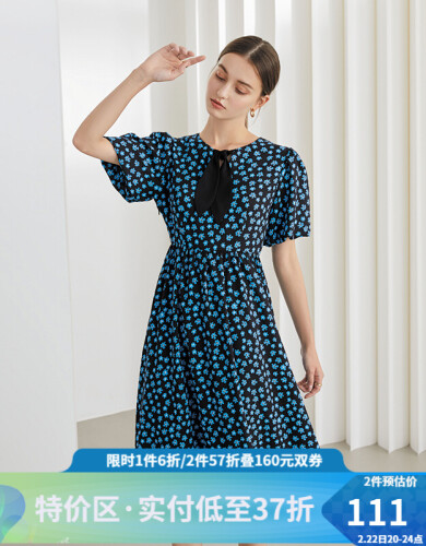 当前的位置: 首页 > 今日值得买 > 范思蓝恩兔耳朵泡泡袖碎花连衣裙女夏新款法式茶歇裙211569 黑底蓝花 M