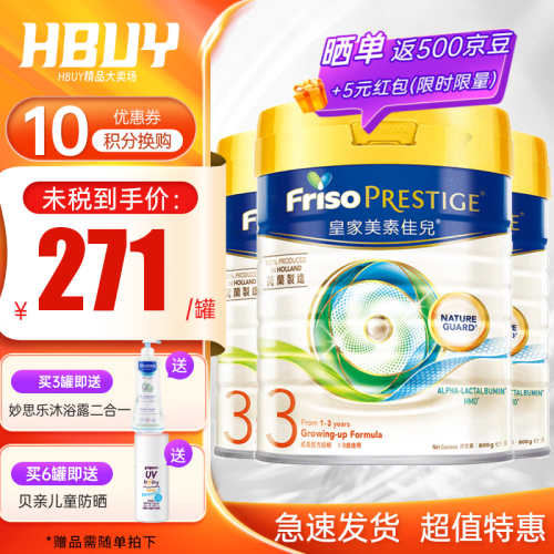 当前的位置: 首页 > 今日值得买 > 美素佳儿(Friso)【荷兰原装进口 】皇家美素佳儿港版Friso婴幼儿配方奶粉 800g/罐 3段3罐(1-3岁)24年2月到期
