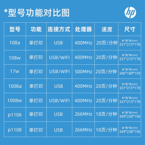 当前的位置: 首页 > 今日值得买 > 惠普(HP)108w/P1108激光打印机 a4黑白小型办公家用 P1106/1008w/103a 【单功能经典款】 P1106 电脑连线(USB)