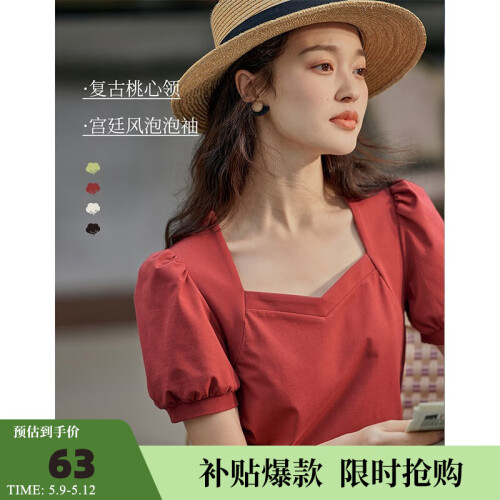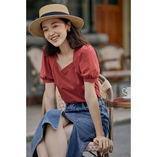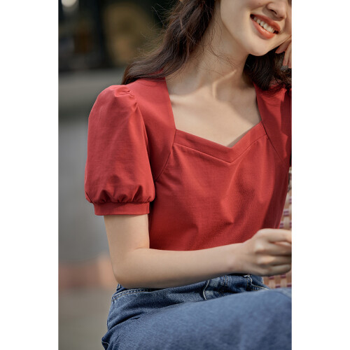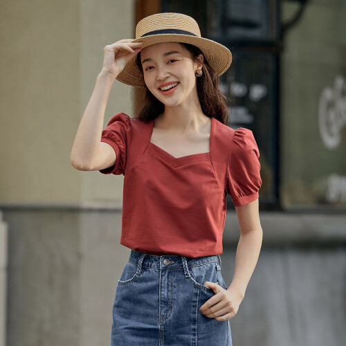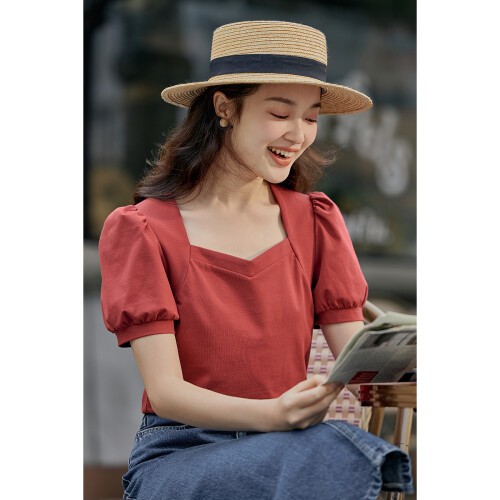 当前的位置: 首页 > 今日值得买 > 茵曼夏季新款法式方领套头泡泡袖修身气质显瘦棉质T恤女 复古红 M