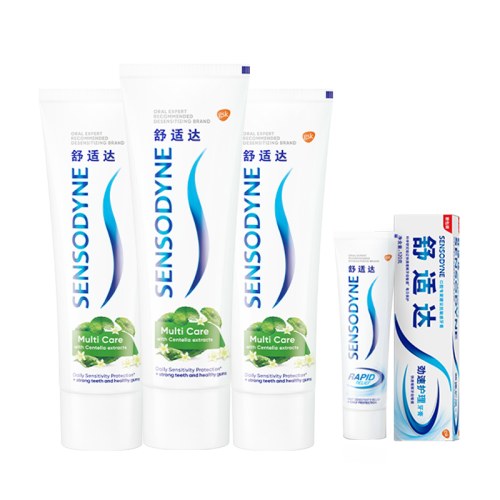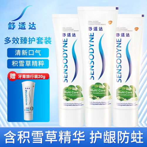 当前的位置: 首页 > 今日值得买 > 舒适达牙膏套装 多效护理抗敏感健齿护龈呵护牙龈美白牙齿去烟渍牙黄渍 多效臻护套装(共320g)