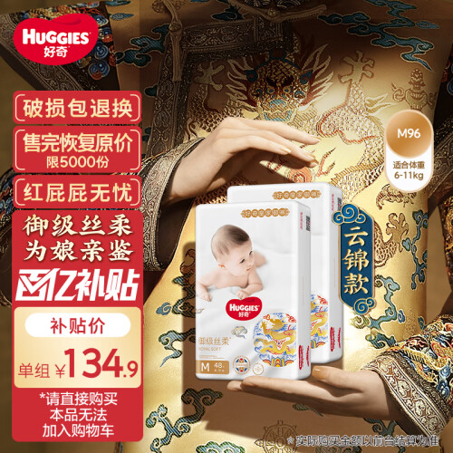 当前的位置: 首页 > 今日值得买 > 好奇(Huggies)皇家御裤纸尿裤M96片(6-11kg)中号婴儿尿不湿龙纹裤裸感超薄透气