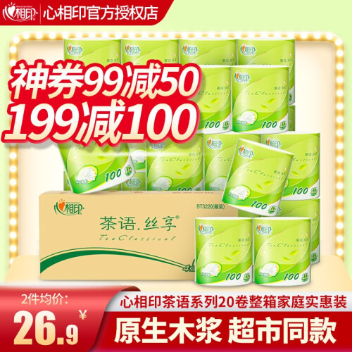 当前的位置: 首页 > 今日值得买 > 【神券99减50 199减100】心相印卷纸4层100克20卷心柔有芯家用整箱实惠卷筒纸厕纸无香型