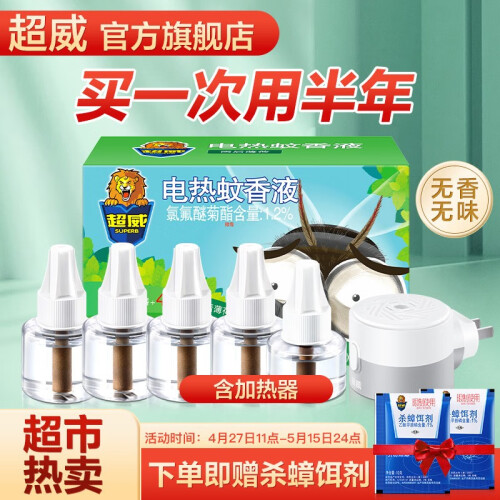 当前的位置: 首页 > 今日值得买 > 超威电热蚊香液 驱蚊液家用雨后薄荷香灭蚊器电蚊香加热器 5瓶1器(驱蚊285晚)