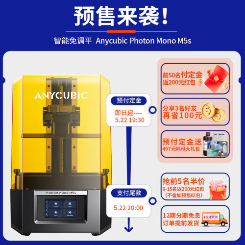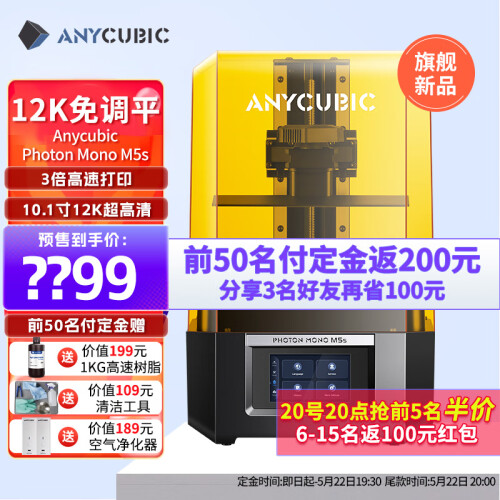 当前的位置: 首页 > 今日值得买 > ANYCUBIC 10寸12K高清免调平Mono M5s光固化高速3d打印机黑白屏LCD高精创客手办 M5s(10.1寸12K免调平)