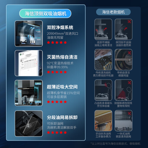 当前的位置: 首页 > 今日值得买 > 海信(Hisense)油烟机 顶侧双吸式 排油烟机 超薄近吸 7字型抽油烟机 23立方挥手免拆洗家用厨房抽油烟机DS11H