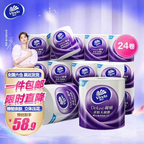 当前的位置: 首页 > 今日值得买 > 维达(Vinda)卷纸棉韧立体美4层125克24卷 家用厕纸有芯卫生纸巾 无香整箱