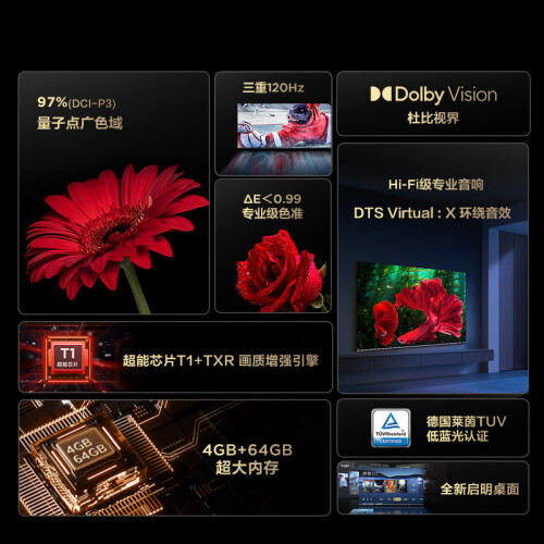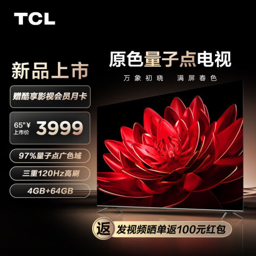 当前的位置: 首页 > 今日值得买 > TCL电视 65T8G Max 65英寸 超高清4K 120Hz刷新率 QLED量子点 远场语音 全面屏 液晶平板电视 65英寸 官方标配