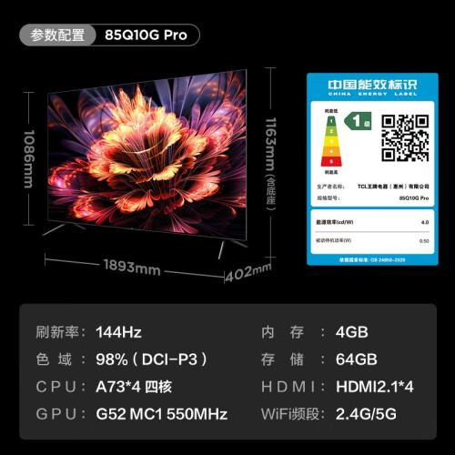当前的位置: 首页 > 今日值得买 > TCL电视 85Q10G Pro 85英寸 Mini LED 896分区 2200nits 4K 144Hz 2.1声道音响 平板电视机 以旧换新 85英寸 官方标配