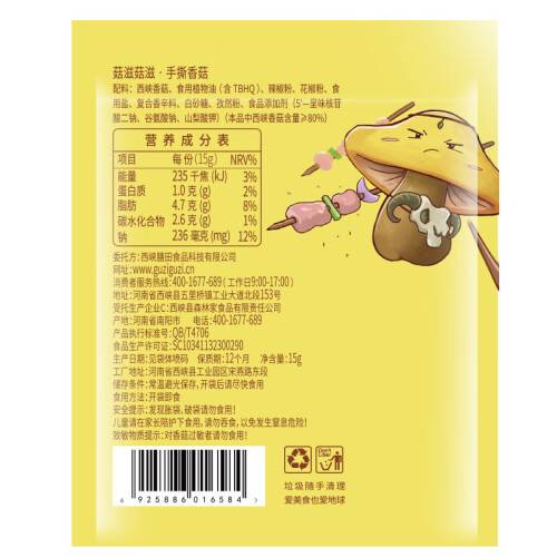 当前的位置: 首页 > 今日值得买 > 菇滋菇滋(guziguzi) 手撕香菇辣片辣条下饭菜 香辣下饭休闲零食 15g 孜然味40袋