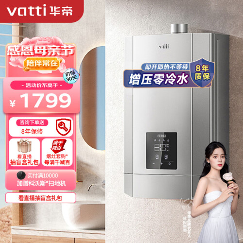 当前的位置: 首页 > 今日值得买 > 华帝(VATTI)16升燃气热水器天然气 家用 恒温即热式 零冷水 增压瀑布浴 低水压启动 i12037-16