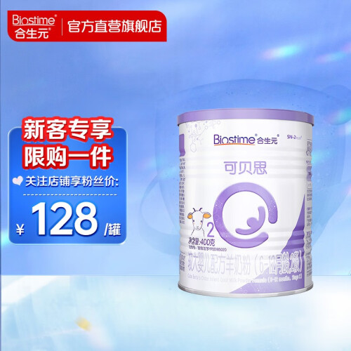 当前的位置: 首页 > 今日值得买 > 合生元(BIOSTIME)【官方】可贝思 较大婴儿配方羊奶粉2段(6-12个月)400g