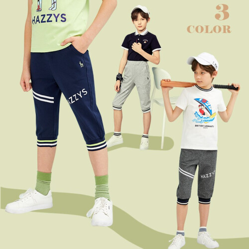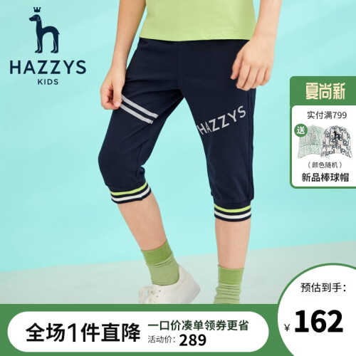 当前的位置: 首页 > 今日值得买 > HAZZYS童装哈吉斯男童七分裤儿童夏季新品中大童纯色罗纹针织裤子 深藏蓝 120cm