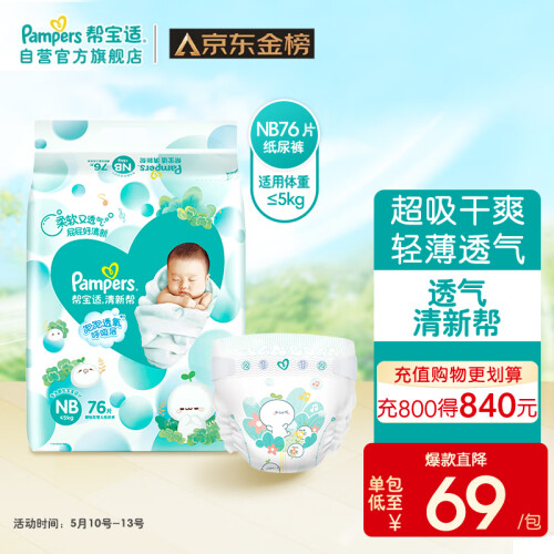 当前的位置: 首页 > 今日值得买 > 帮宝适清新帮纸尿裤NB76片(≤5kg)新生儿尿裤尿不湿 超薄透气