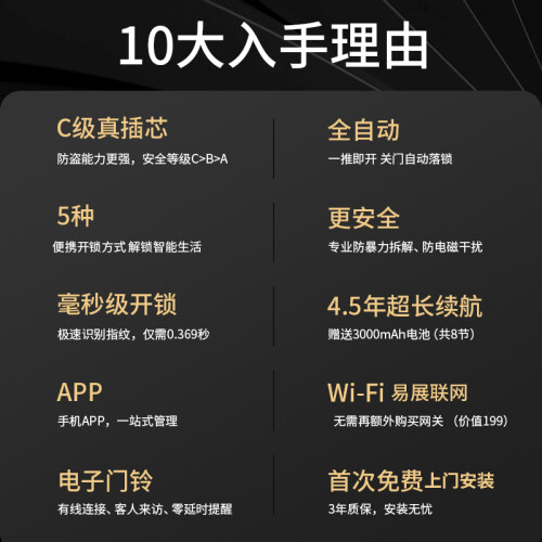 当前的位置: 首页 > 今日值得买 > TP-LINK 全自动智能门锁C级锁芯 家用指纹锁密码锁防盗门锁入户门 电子锁体 防猫眼 自带电子门铃 SL30 lite