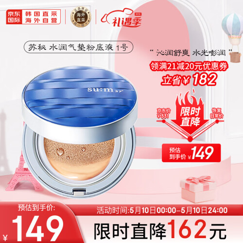 当前的位置: 首页 > 今日值得买 > 苏秘37°(Su:m37°)呼吸惊喜水份水润气垫遮瑕粉底液 #15g+2个替换芯 1号白皙色