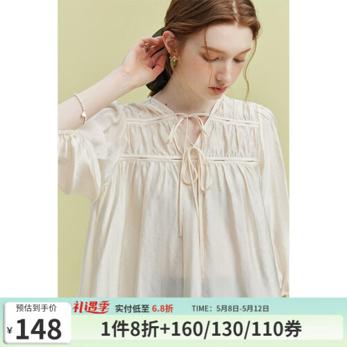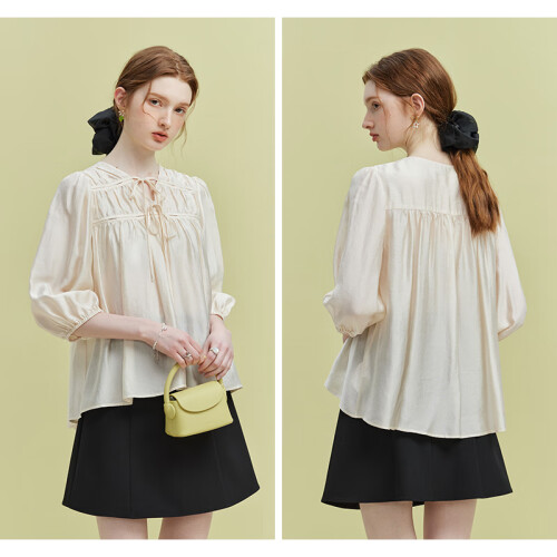 当前的位置: 首页 > 今日值得买 > 范思蓝恩23FS12377复古褶皱系带设计感V领衬衫夏季百搭纯色女衬衣 米杏色 M